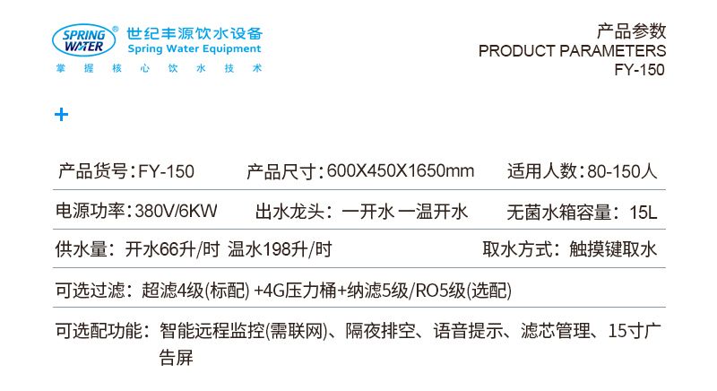 相關(guān)標(biāo)簽:反滲透水處理 50人用觸摸屏直飲機、型號:FY-F150無膽速熱型