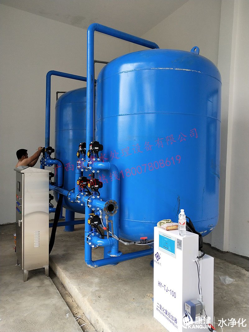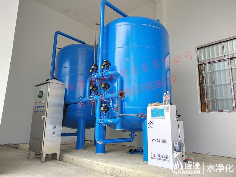 工藝流程:河水-石英砂過濾器(二級過濾)-二氧化氯消毒