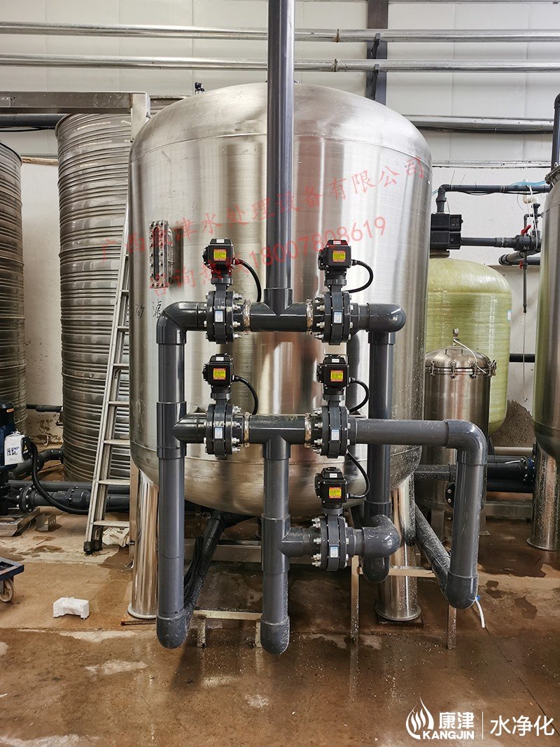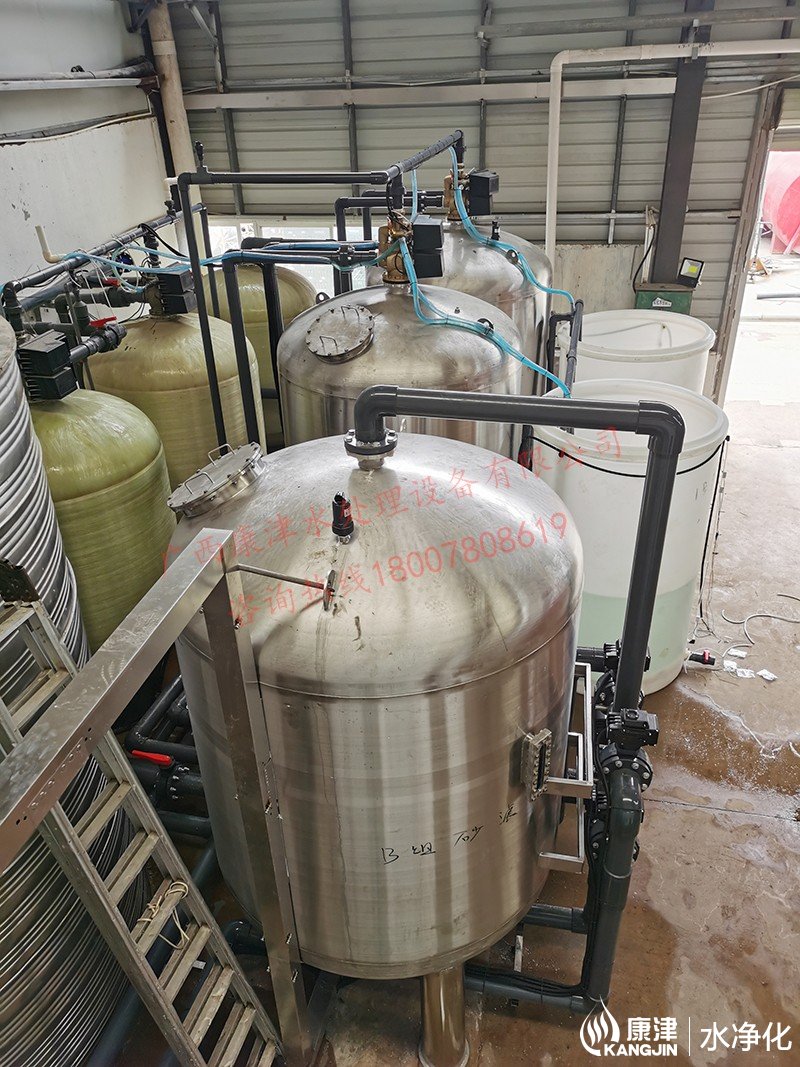 工藝流程:井水-原水箱-錳砂過濾器-石英砂過濾器-活性炭過濾器-軟化水-凈水箱