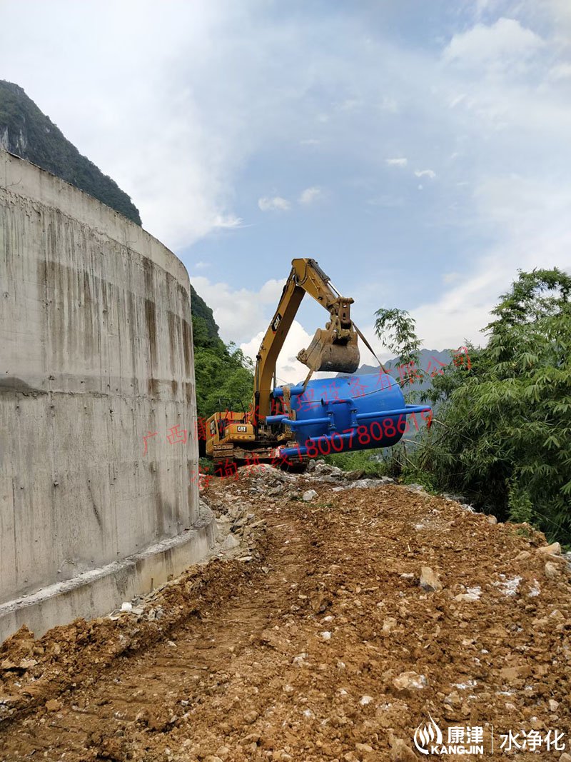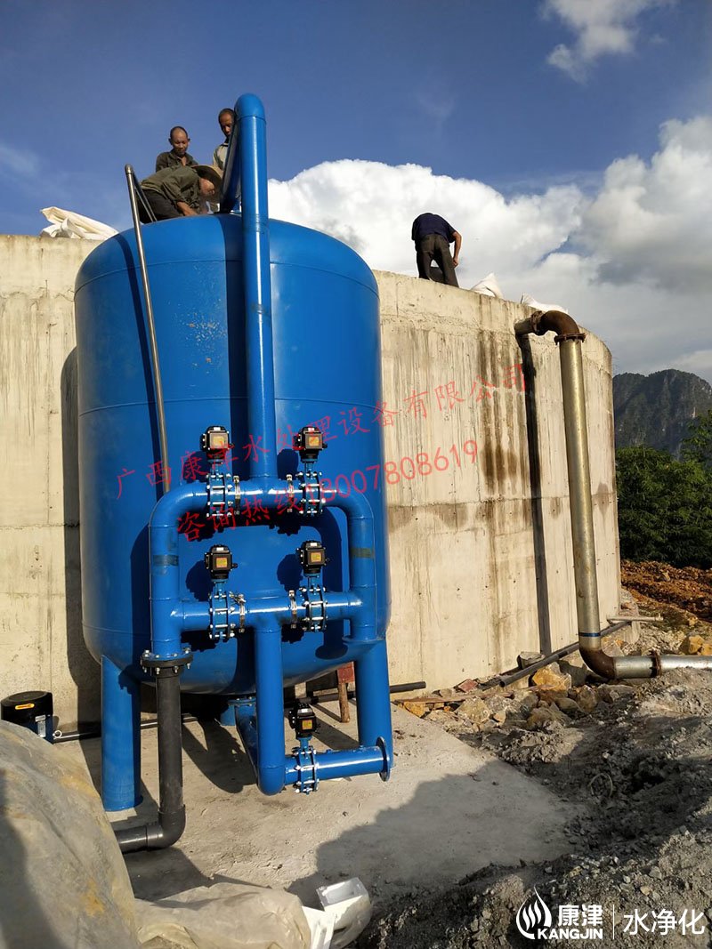 項目名稱:百色市凌云縣伶站瑤族鄉40噸壓力式一體化凈水設備 設備名稱:40噸壓力式一體化凈水設備 工藝流程:河水-絮凝加藥-石英砂過濾器-二氧化氯加藥器-凈水箱-各用水點...