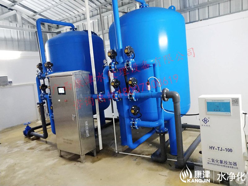 項(xiàng)目名稱:貴港市六吉地下水凈化工程 設(shè)備名稱:20噸壓力式凈水設(shè)備 工藝流程:地下水-石英砂過(guò)濾器-二氧化氯消毒-加壓泵-高位水塔 產(chǎn)品型號(hào):KJ-DF-1500...