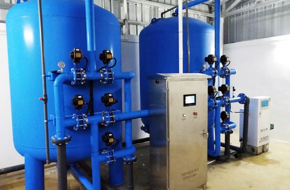 設(shè)備是壓力式的,其原理是當(dāng)原水自上而下通過(guò)濾料時(shí),水中懸浮物由于吸附和機(jī)械阻流作用被濾層表面截留下來(lái);當(dāng)水流進(jìn)濾層中間時(shí),由于濾料層中的砂粒排列的更緊密,使水中微粒有更多的機(jī)會(huì)與砂粒碰撞,于是水中凝絮物、懸浮物和砂粒表面相互粘附,水中雜質(zhì)截留在濾料層中,從而得到澄清的水質(zhì)。經(jīng)過(guò)濾后的出水懸浮物可在3毫克/升以下。