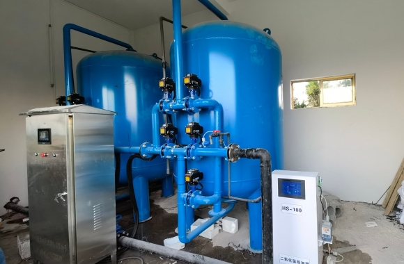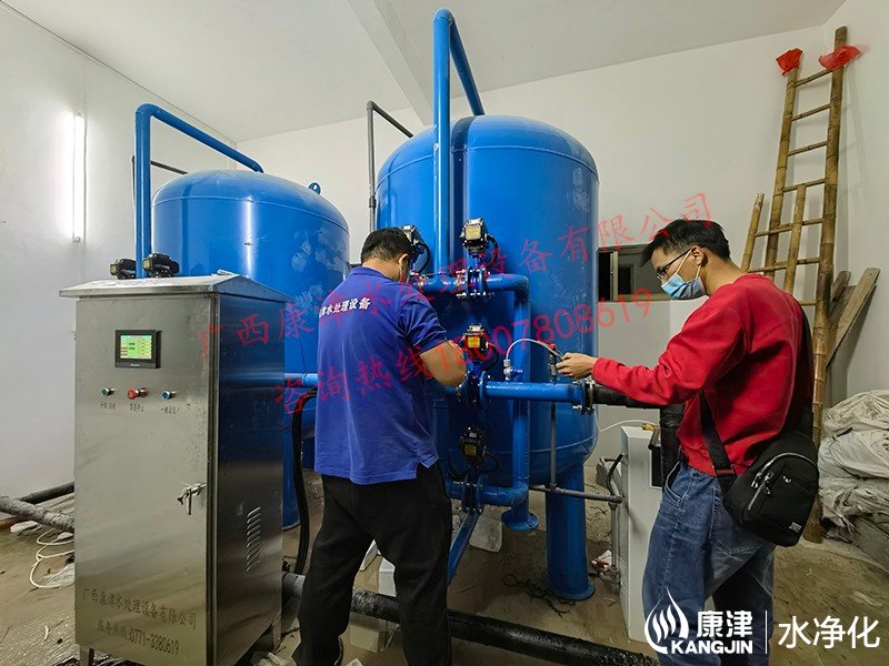 項目名稱:貴港旺嶺村地下水凈化工程 設(shè)備名稱:30噸壓力式凈水設(shè)備 工藝流程:河水-石英砂過濾器(二級過濾)-二氧化氯消毒...