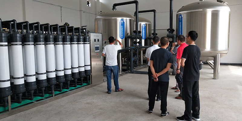 項目名稱:賓陽縣中華鎮水廠超濾凈水設備 設備名稱:80噸超濾凈水設備 工藝流程:山泉水-石英砂過濾器-活性炭過濾器-袋式過濾器-超濾膜機主-凈水箱 產品型號:UF-80T...