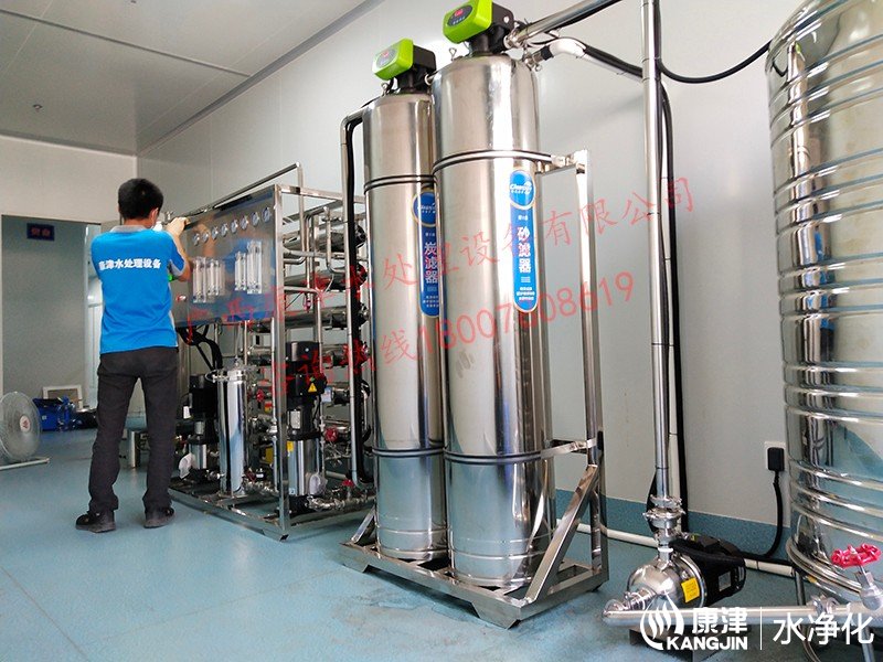 工藝流程:原水箱-原水泵-石英砂過濾器-活性炭過濾器-精密過濾器-雙極反滲透-凈水箱-變頻供水-各點用水