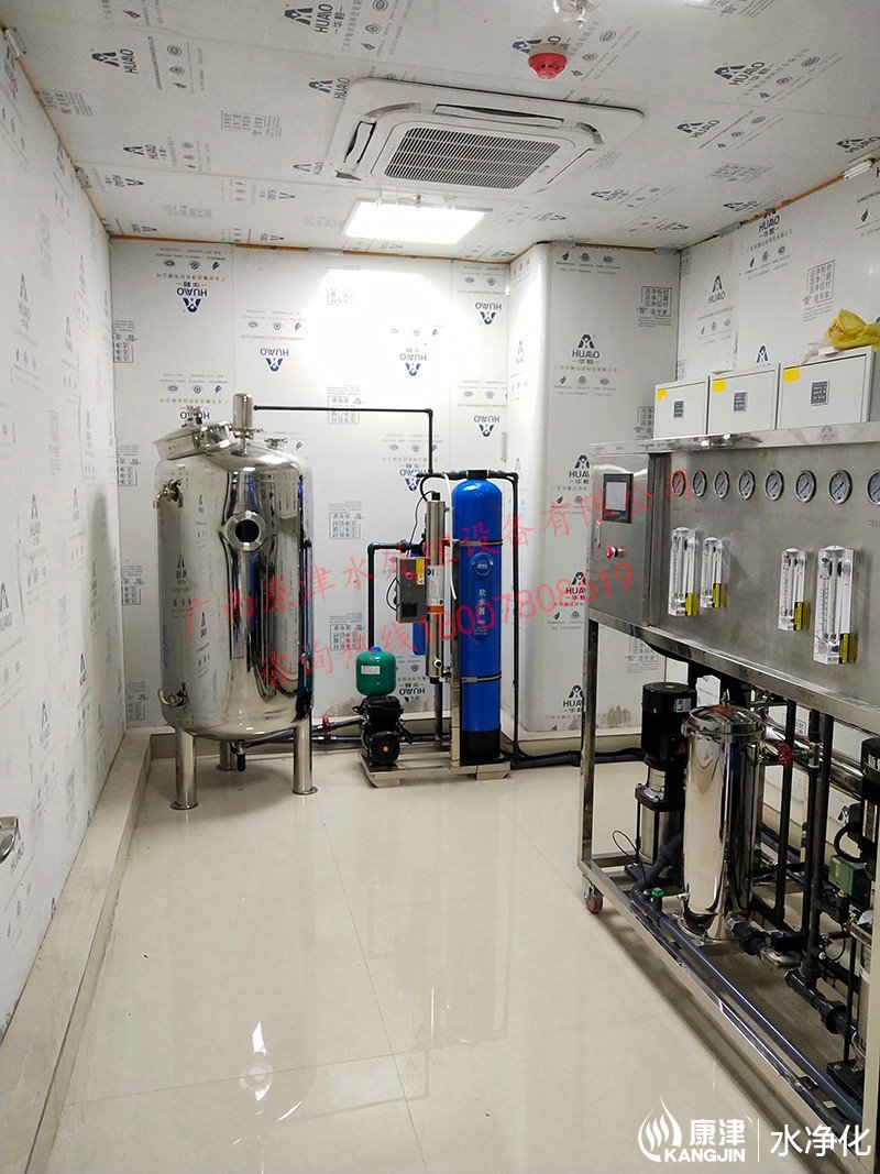 工藝流程:原水-原水泵-石英砂過濾器-活性炭過濾器-反滲透設(shè)備-精密過濾器-軟化水設(shè)備-凈水箱-變頻供水回水殺菌系統(tǒng)-用水點