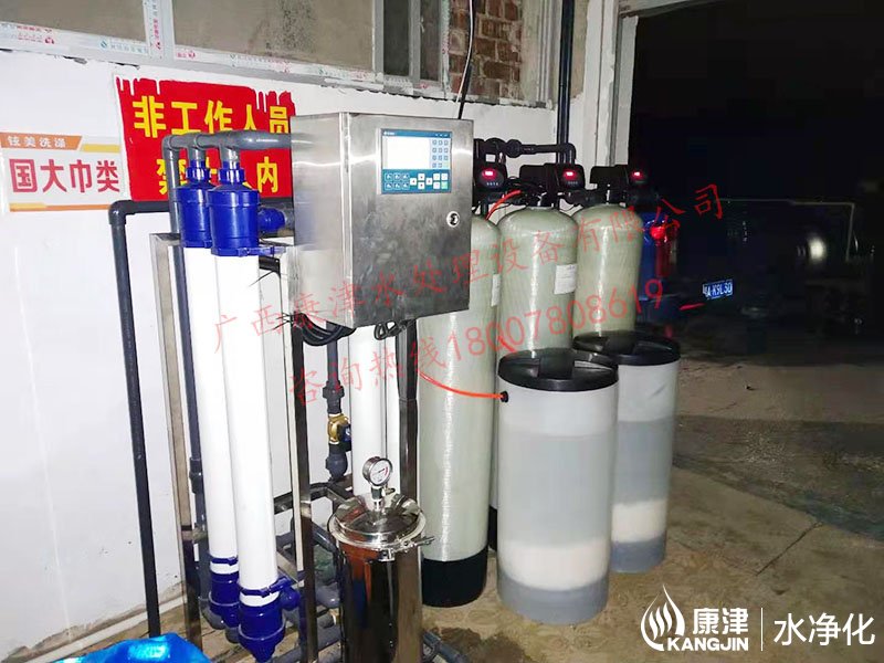 工藝流程:井水-原水箱-石英砂過濾器-活性炭過濾器-超濾-軟化水-凈水箱