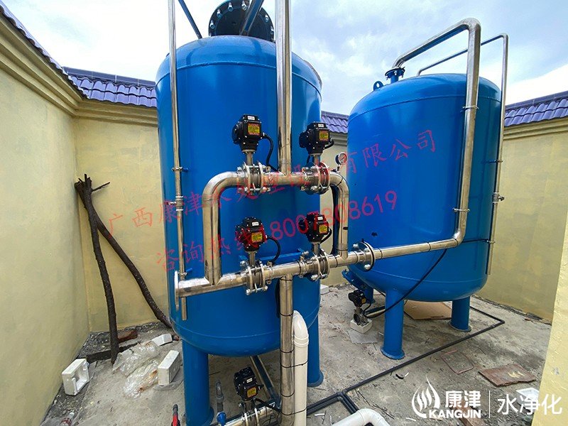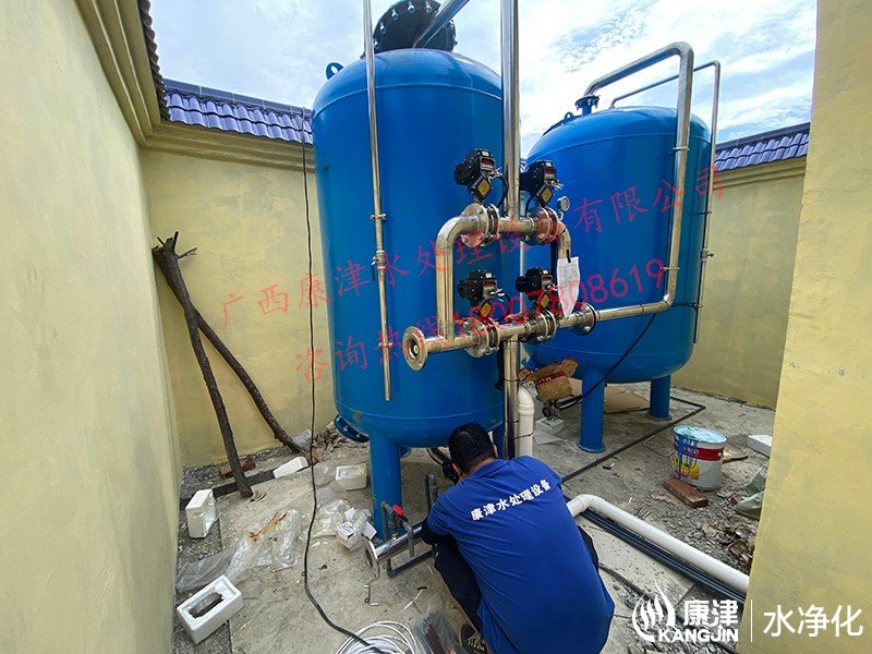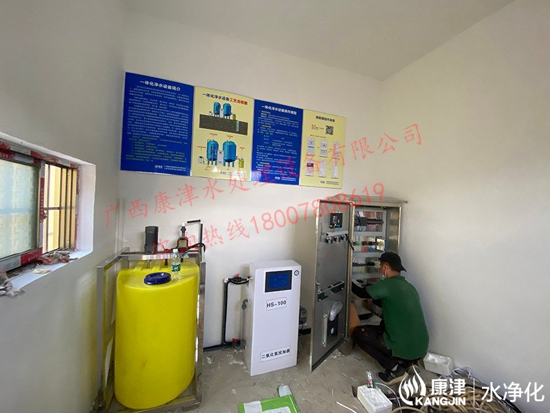 項目名稱:農村飲水安全鞏固提升工程 設備名稱:貴港市李村20噸壓力式一體化凈水設備 工藝流程:河水-絮凝加藥-沉淀過濾器-石英砂過濾器-二氧化氯消毒...