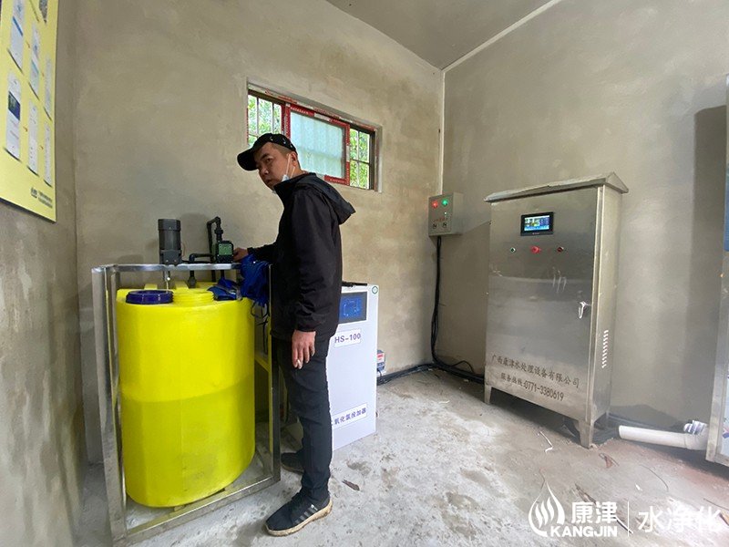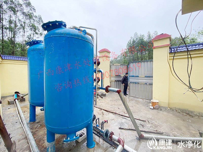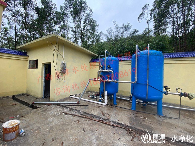 項目名稱:農(nóng)村飲水安全鞏固提升工程 設備名稱:貴港市三六村10噸壓力式一體化凈水設備 工藝流程:河水-絮凝加藥-沉淀過濾器-石英砂過濾器-二氧化氯消毒...