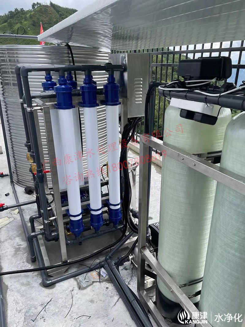 項目名稱:樂業項目部3噸超濾凈水設備 設備名稱:3噸超濾凈水設備 工藝流程:地下水-原水箱-原水泵-石英砂過濾器-活性炭過濾器-精密過濾器-超濾設備-凈水箱...