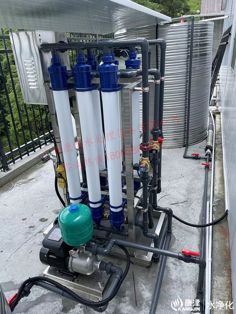 工藝流程:地下水-原水箱-原水泵-石英砂過濾器-活性炭過濾器-精密過濾器-超濾設備-凈水箱