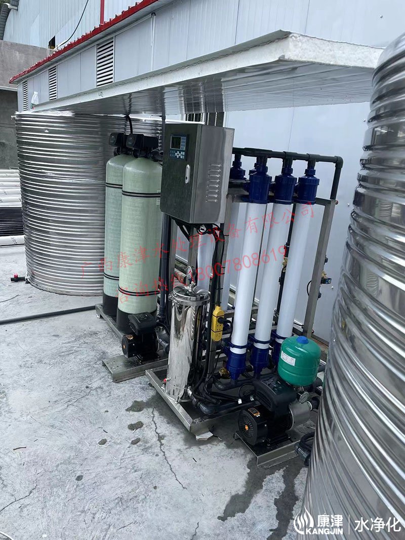 工藝流程:地下水-原水箱-原水泵-石英砂過濾器-活性炭過濾器-精密過濾器-超濾設備-凈水箱