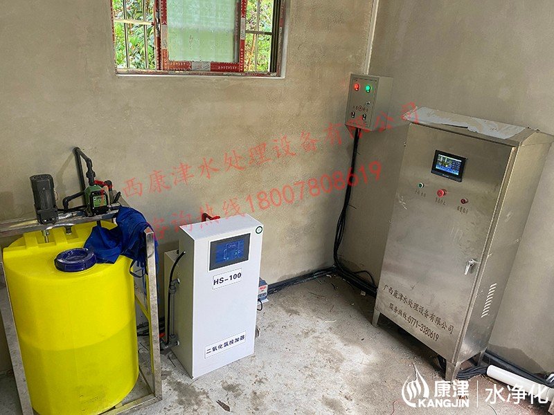 工藝流程:河水-絮凝加藥-沉淀過濾器-石英砂過濾器-二氧化氯消毒