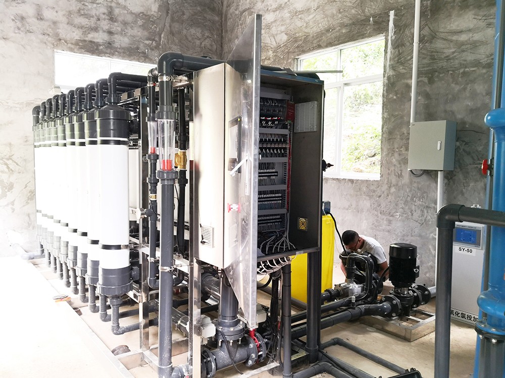 超濾是利用超濾膜的微孔篩分機理,在壓力驅動下,將直徑為0.002-0.1μm之間的顆粒和雜質截留,去除懸浮物、膠體、蛋白質、微生物和大分子有機物。