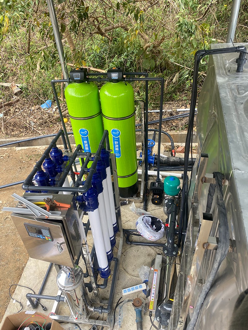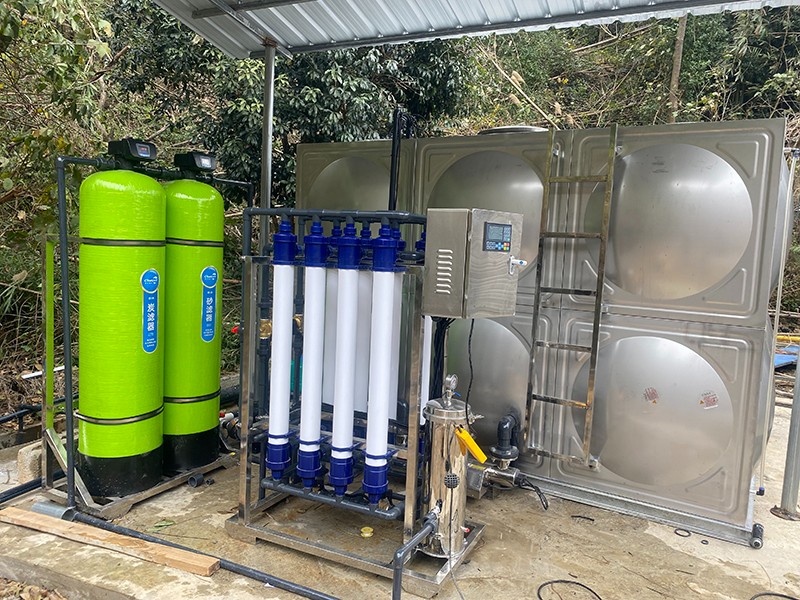 本方案主要針對(duì)原水為河水,以河水為飲用水源的地區(qū),常常在雨季會(huì)遇到水質(zhì)渾濁發(fā)黃問(wèn)題。河水通常比較渾濁,水面漂浮臟東西、樹(shù)葉、水藻等,尤其在暴雨季節(jié),水中泥沙量增加,雜質(zhì)多,濁度、色度、氣味、細(xì)菌含量超標(biāo),因此必須使用專業(yè)凈水設(shè)備處理后才能達(dá)到生活飲用的目的。我們對(duì)河水的凈化主要是除去水中雜質(zhì),包括以下幾種:泥沙、大分子顆粒雜質(zhì)、懸浮物、藻類、膠體,去除污染色度、異味、微生物、細(xì)菌、病毒等,有的源水會(huì)含有HCO、Ca 、SO 、Cl 、Na 、Mg 和K。為了將河水指標(biāo)達(dá)到生活用水標(biāo)準(zhǔn),通過(guò)康津超濾設(shè)備進(jìn)而得到凈化。康津水處理為根據(jù)實(shí)際用途情況制定以下解決方案。用水人數(shù)大約在50至100人,用水處理量每小時(shí)約4噸。