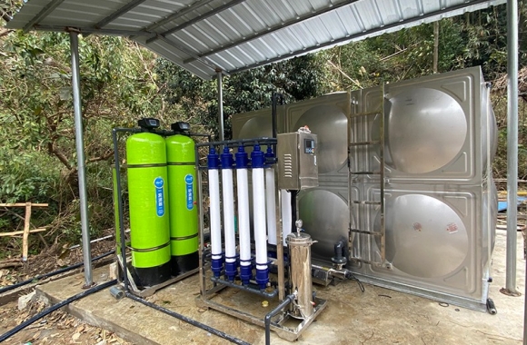 項目名稱:上林鼓鳴寨4噸生活用水設備 設備名稱:4噸超濾凈水設備 工藝流程:自來水-原水箱-石英砂過濾器-活性炭過濾器-精密過濾器-超濾設備-紫外線消毒器-變頻供水-各用水點...