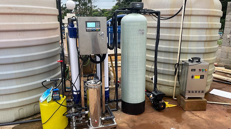 項目名稱:欽州市某項目部4噸超濾生活用水設備 設備名稱:4噸超濾凈水設備 工藝流程:地下水-原水箱(自備)-臭氧發生器-原水泵-錳砂過濾器-精密過濾器-超濾設備-凈水箱(自備)-二氧化氯加藥-供水泵...