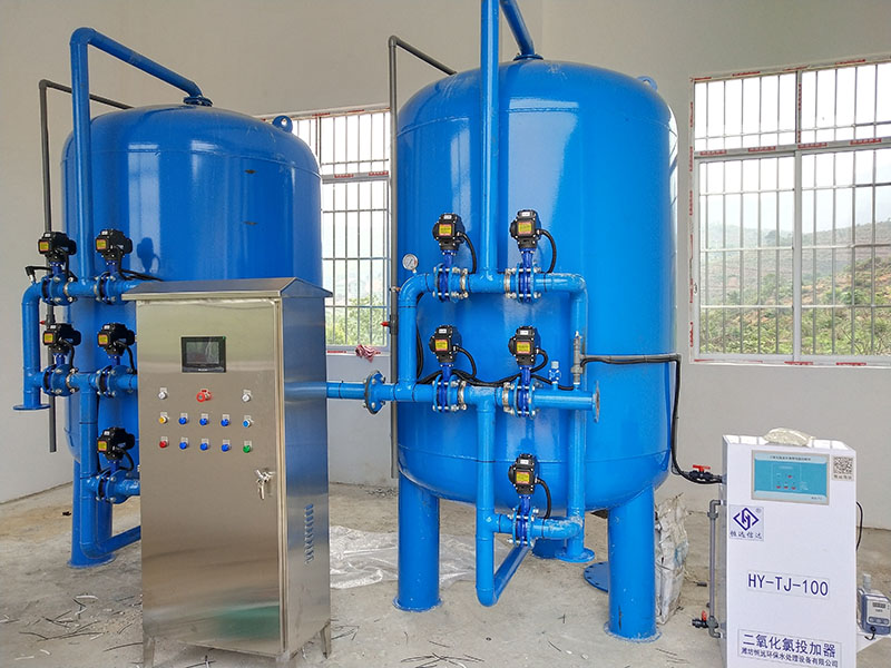 本方案主要針對(duì)原水為河水、地下水、自來水等地區(qū),水源通常比較渾濁,水面漂浮臟東西、樹葉、水藻等,尤其在暴雨季節(jié),水中泥沙量增加,雜質(zhì)多等情況。因此利用填料來降低水中 濁度,截留除去水中懸浮物、有機(jī)物膠質(zhì)顆粒,是給水凈化的重要水處理設(shè)備??到蛩幚頌楦鶕?jù)實(shí)際用途情況制定以下解決方案。用水處理量每小時(shí)約40噸。