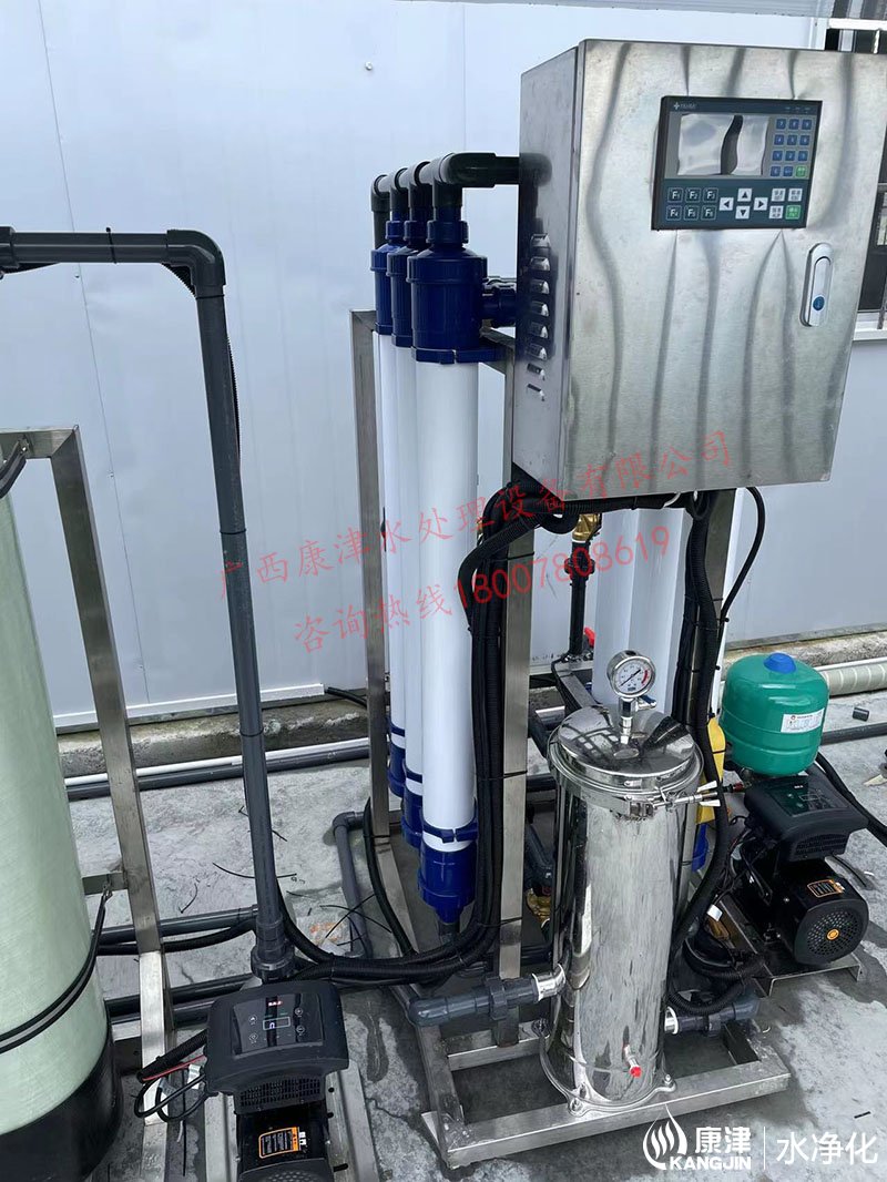 工藝流程:地下水-原水箱-原水泵-石英砂過濾器-活性炭過濾器-精密過濾器-超濾設備-凈水箱
