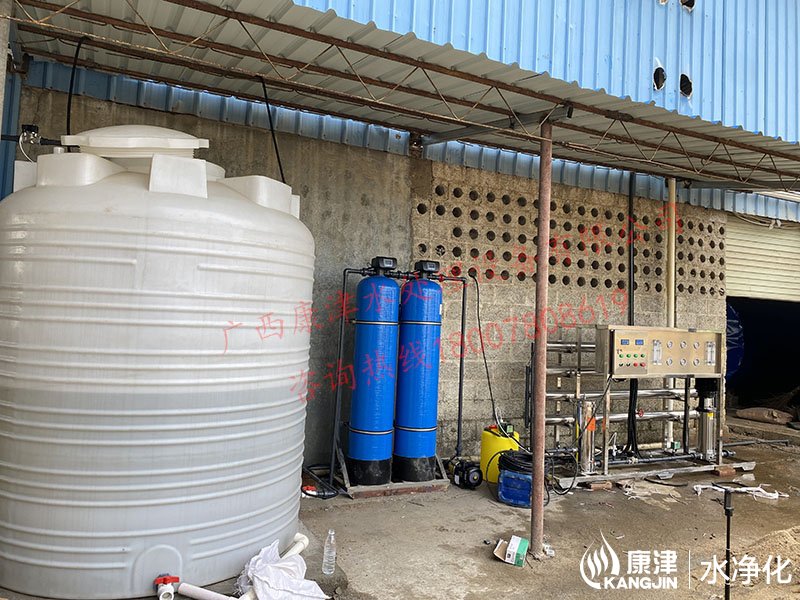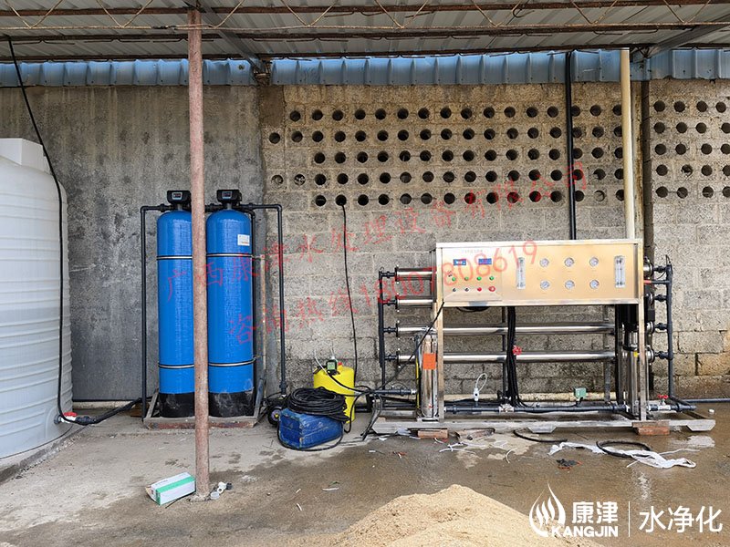 工藝流程:井水-原水箱-石英砂過濾器-活性炭過濾器-精密過濾器-增壓泵-反滲透設備-凈水箱
